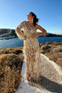 - Beige base with striking gold and silver sequins