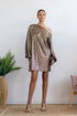Mini φόρεμα με μεταλλική υφή και ασύμμετρο ώμο