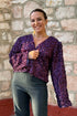 - Κοντό jacket σε βαθύ μοβ, διακοσμημένο με παγιέτες και πέταλα