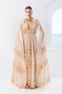 Τα εντυπωσιακά μακριά μανίκια τύπου cape και τα πολυεπίπεδα βολάν στο κάτω μέρος δημιουργούν κίνηση σε κάθε βήμα, χαρίζοντας θεατρική αλλά εκλεπτυσμένη παρουσία.